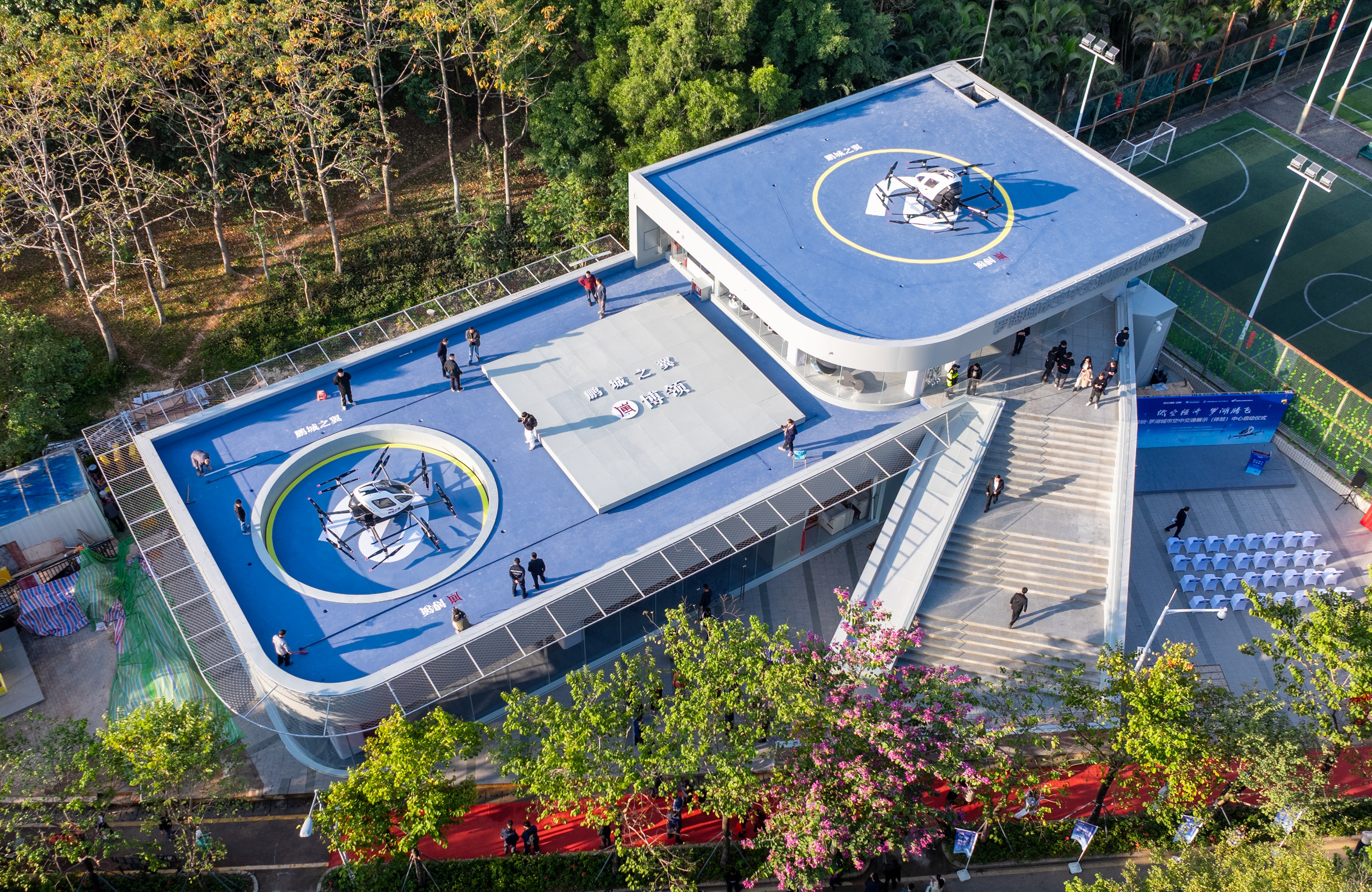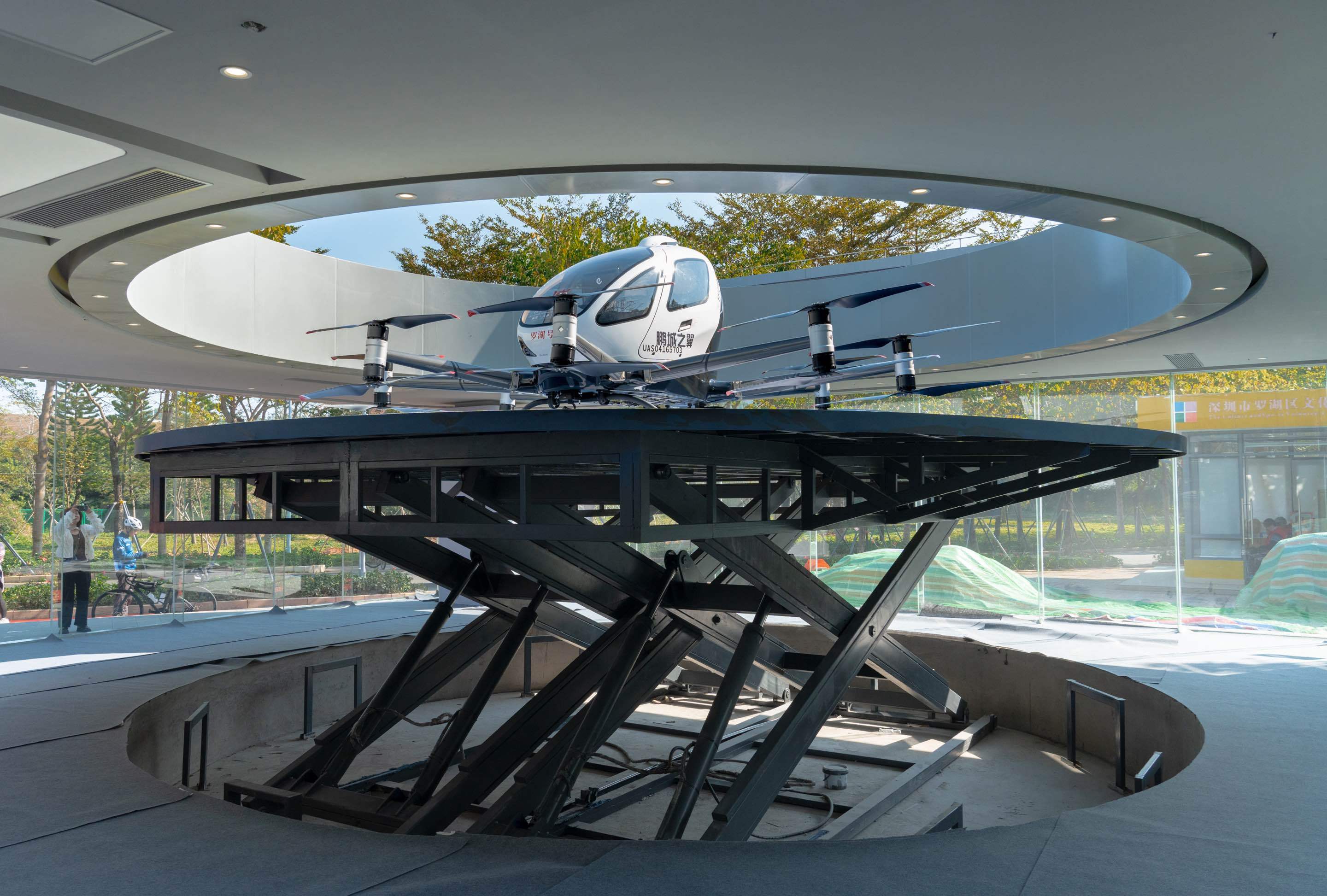 1月21日,罗湖首个智能化城市空中交通展示(体验)中心启用。该中心位于罗湖体育休闲公园内,集飞行、展示、科普、体验、研学等功能性于一体,围绕亿航智能无人驾驶航空器首创飞行甲板,通过升降平台把亿航智能EH216-S无人驾驶载人航空器(eVTOL)从一层停机位向上推送至二层起降平台,科技感满满!乘客在室内登机后再垂直提升至二层起降点起飞,整个乘坐和体验飞行过程轻松舒适。